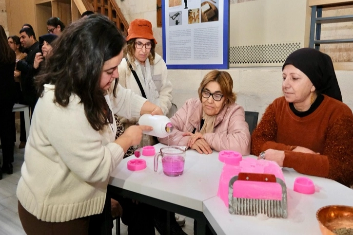 Üretim ve Dayanışma Farkındalığı Etkinliği’ne katılan 25 kadın Sabun Atölyesi’nde sabun üretimi konusunda bilgi aldı, ardından kendi sabunlarını yaparak geleneksel el sanatlarına dair keyifli bir deneyim yaşadı. Sabun Atölyesi’ndeki etkinlikte kadınlar, sabun yapımının tarihçesini ve doğal malzemelerle üretim şeklini öğrenme fırsatı buldu.