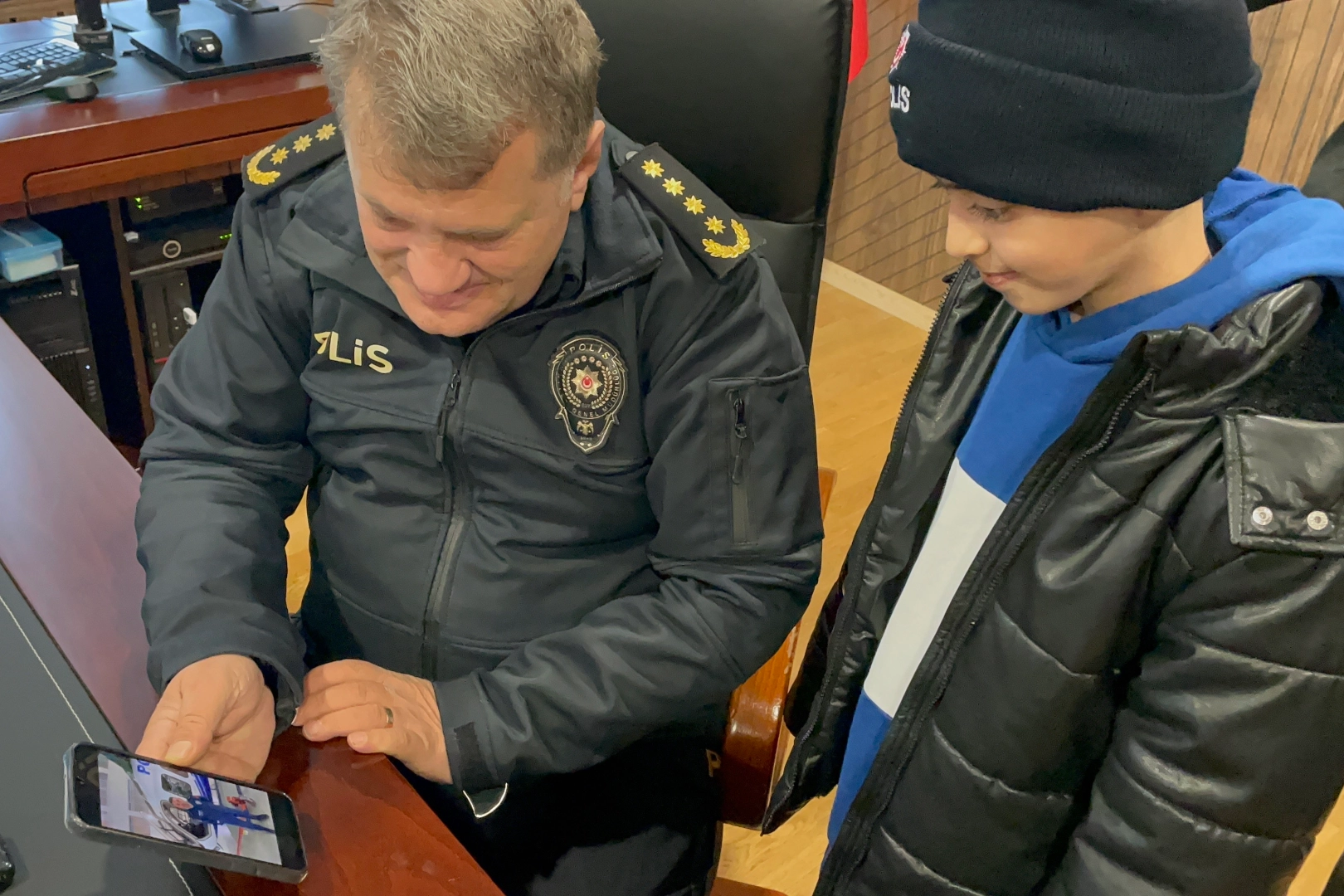 Gösterdiği anlamlı ve duyarlı davranış nedeniyle takdir toplayan küçük Mustafa, İl Emniyet Müdürü Uzman’ın daveti üzerine ailesiyle birlikte Emniyet Müdürlüğü’ne gitti.