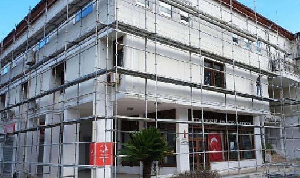 Kemer Belediye binasının iç ve dış cephesinde tadilat çalışmaları başladı.