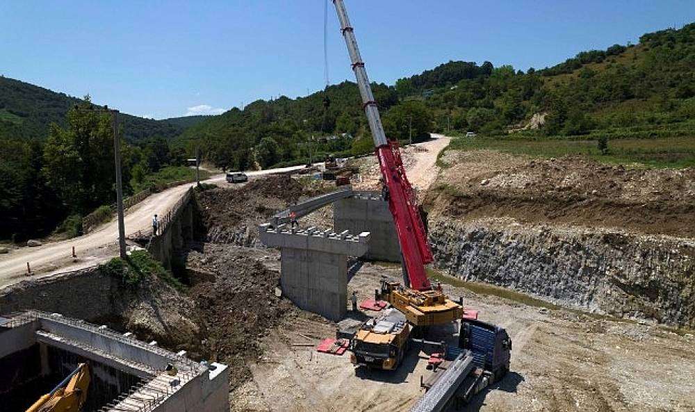 Duraklı-Alihocalar Köprüsü'nde kiriş montajı