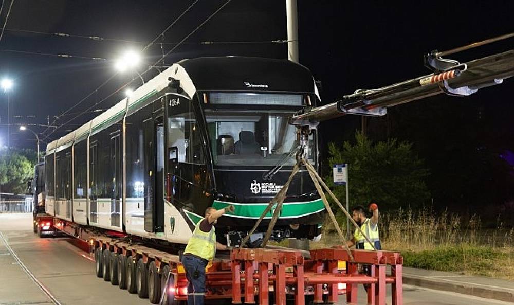 Yolcu kapasitesi artan kentimizi, konforlu ulaşımla buluşturan Kocaeli Büyükşehir Belediyesi, bu konforu büyük ölçüde karşılayan tramvay filosunu her geçen gün daha da güçlendiriyor. Bu kapsamda Büyükşehir Belediyesi, 10 adet tramvay aracı alımı için ihaleye çıkmış ve bunlardan 6 tanesini belli aralıklarla teslim almıştı. Geçtiğimiz günlerde 7’nci tramvay aracını da teslim alan Büyükşehir, 8’inci tramvay aracını raylara indirdi.
