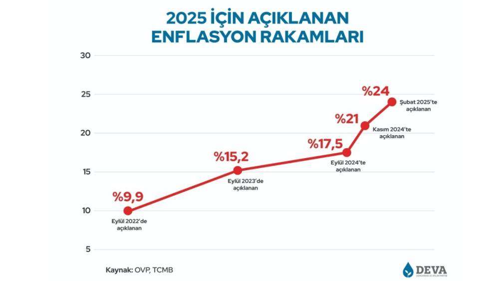 "Seçim öncesinde '2025'te enflasyon yüzde 9,9 olacak' diyerek insanları kandırdılar. Ama gerçekler ortaya çıktı. Bugün Merkez Bankası bile 2025 yılı için yüzde 24 enflasyon öngörüyor. Yani seçim öncesi verilen sözler tamamen gerçek dışıydı."