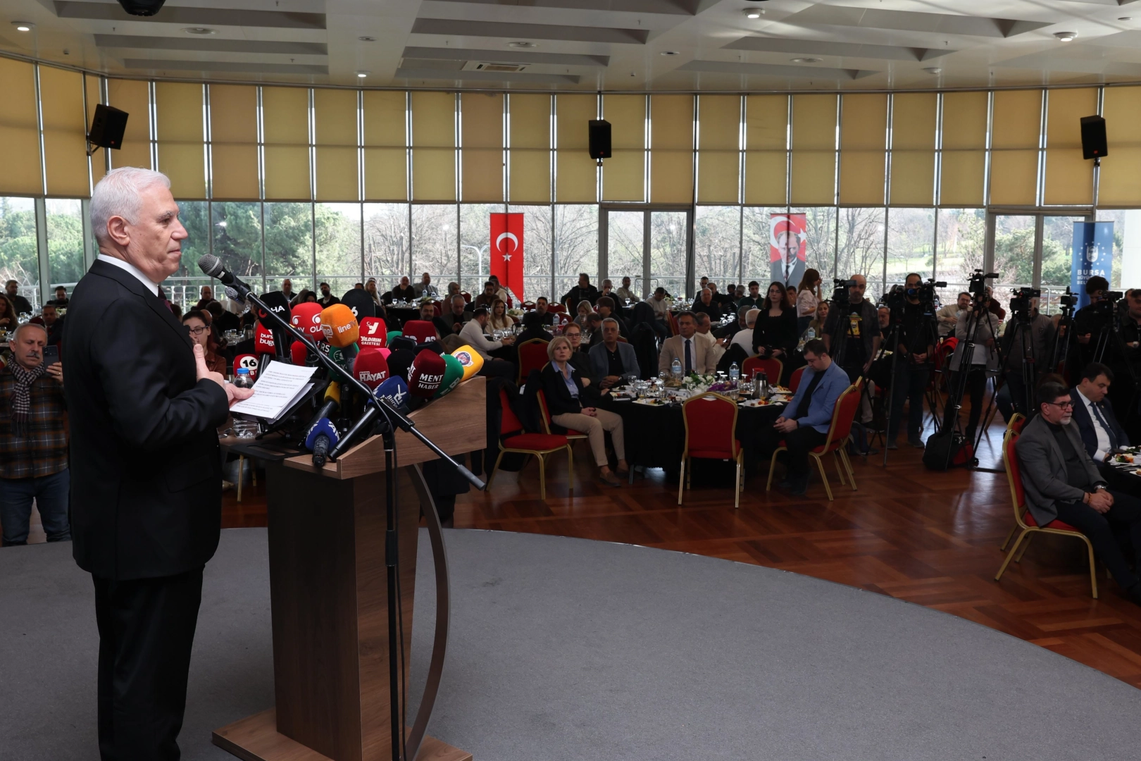 BURSA (İGFA) - Atatürk Kültür Merkezi Merinos Yerleşkesi’ndeki programa, Başkan Mustafa Bozbey’in yanı sıra CHP Bursa Milletvekilleri Hasan Öztürk, Büyükşehir Belediyesi yöneticileri, basın meslek kuruluşlarının yöneticileri, yerel ve ulusal medya temsilcileri katıldı.