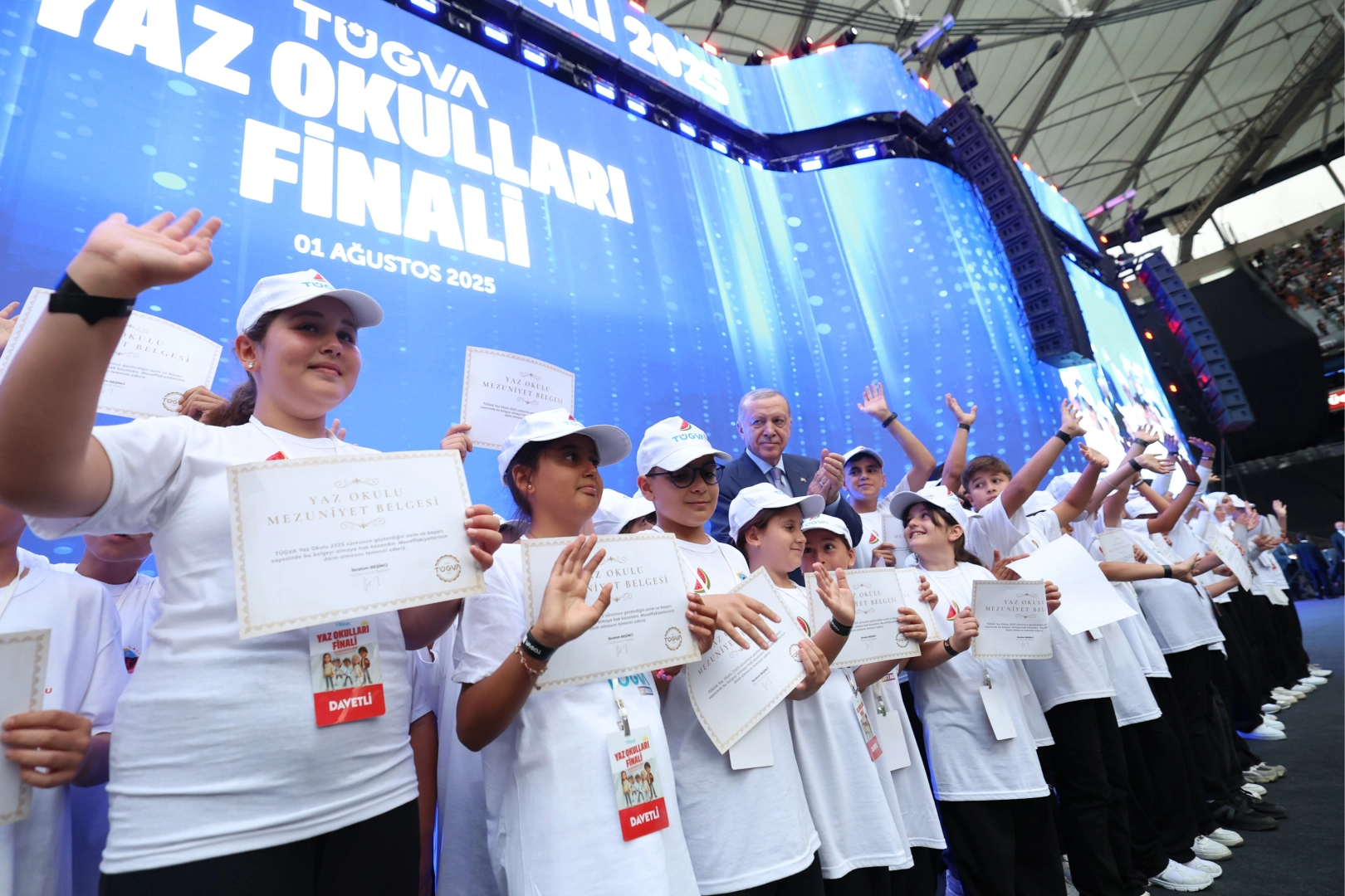 Cumhurbaşkanı Recep Tayyip Erdoğan, TÜGVA Yaz Okulları Finali’nde yaptığı konuşmada, gençlerin vatana ve millete sevdalı bireyler olarak yetişmesi gerektiğini vurguladı. Gazze’de yaşanan soykırımı kınayan Erdoğan, “Filistin direnişine terör iftirası atanlara rağmen Gazzeli kardeşlerimize sırtımızı dönmedik. Zulmün sona erdiği günleri göreceğiz” dedi.