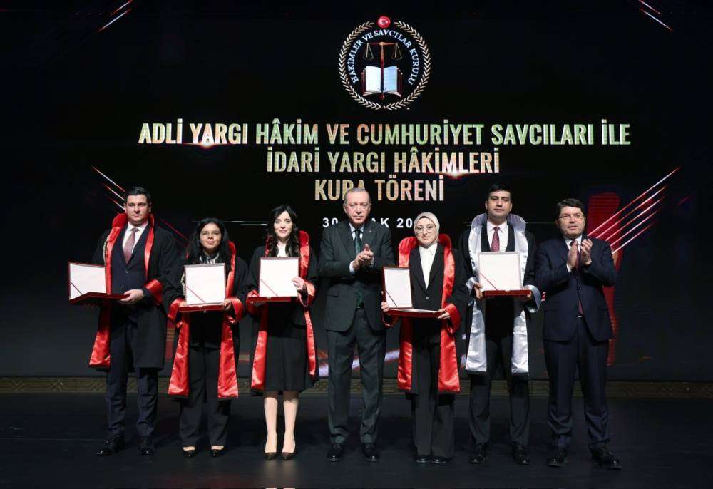 Konuşmasını, adaletin sağlanması için devletin tüm imkanlarını seferber etmeye devam edeceklerini belirterek tamamlayan Cumhurbaşkanı Erdoğan, yeni atanan hakim ve savcılara başarılar diledi.