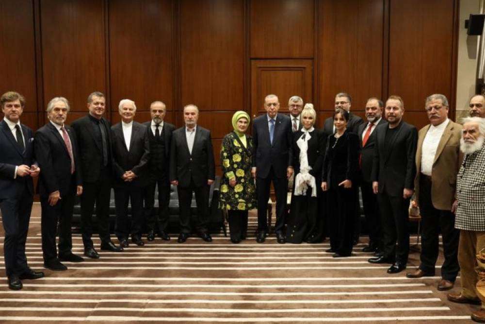 Cumhurbaşkanı Erdoğan ve eşi Emine Erdoğan, ödül alan sanatçılar ve temsilcileriyle hatıra fotoğrafı çektirdi.