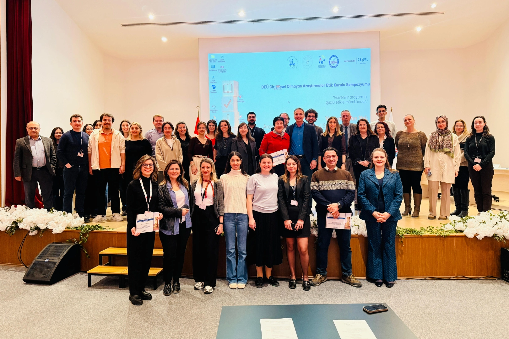 Sempozyum, Dokuz Eylül Üniversitesi Tıp Fakültesi Prof. Dr. Ömer Yiğitbaşı Konferans Salonu’nda gerçekleştirilen geniş katılımlı bir törenle başladı. Bilimsel araştırmalarda etik değerlerin önemine dikkat çekilen etkinlikte, kurula emek veren isimlere teşekkür belgeleri sunuldu. Açılışı İzmir Mandolin Orkestrasının ezgileriyle yapılan sempozyumda, “Araştırmalarda Etik Kurul Süreçleri ve İlkeleri” konusu ele alındı.