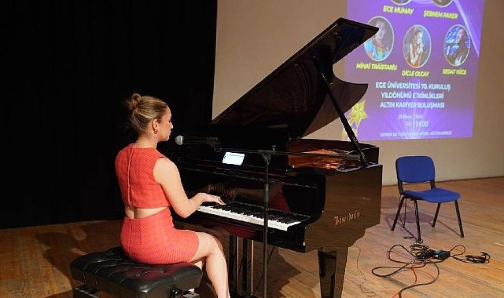Etkinliğin moderatörlüğünü üstlenen Dekan Prof. Dr. Bilgehan Gültekin, “Biz altın kariyer sanatçılarımızı belirlerken iki önemli kriteri esas aldık. Bunlardan ilki, uluslararası platformda ülkemizi başarıyla temsil eden isimleri buluşturmak. Tıpkı Şebnem Paker ve 2001 yılında Kopenhag’da Türkiye’yi temsil eden, İzmir’in uluslararası gururu Sedat Yüce gibi. İkinci kriterimiz ise üniversitemiz mezunları arasından alanında öne çıkan ve Ege Üniversitesini temsil eden sanatçıları davet etmekti. Ege Üniversitesi mezunu Dicle Olcay bu bağlamda bizim için önemli bir örnek. Ayrıca, Türk pop müziğinde yakaladığı çıkış ve müzikal kariyeriyle gençlere ilham veren yetişme tarzı, müzikal çizgisi ve her çıkardığı şarkıyla Türk pop müziğinin en güçlü seslerinden biri olan Ece Mumay gibi isimlerle öğrencilerimizi buluşturmuş olmaktan büyük mutluluk duyuyoruz. Aynı zamanda, Romanya’nın en güçlü seslerinden biri olarak gösterilen, ülkesi Romanya’da büyük ilgi gören ve konserleri her zaman dolup taşan başarılı sanatçı Mihai Trăistariu’nun da bu buluşmada yer alması bizim için çok değerli. Yılmaz Demirtaş da bir Ege Üniversitesi mezunu olarak bizlerin arasında yer aldı” diye konuştu.