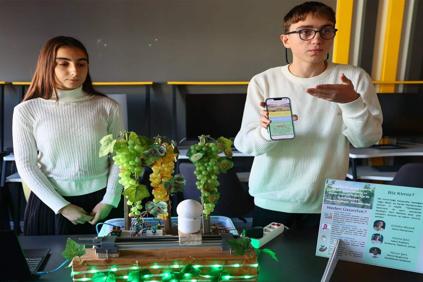 İzmir'de lise öğrencisi iki kardeşin geliştirdiği mobil uygulamayla üzümde hastalık, zararlı böcek ve hasat bilgilerinin anlık olarak takip edilebilmesi sağlanacak.