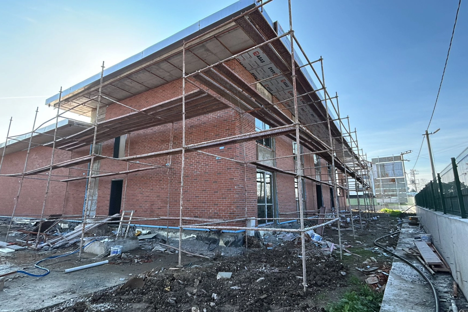 Proje kapsamında, binanın dış cephesindeki tuğla kaplama işlemleri tamamlanırken, kompozit kaplama ise tüm hızıyla devam ediyor. Kaba inşaat, çatı imalatları ve tüm katlardaki tesviye beton uygulamalarının da tamamlandığı yapıda iç mekânlardaki mermer ve seramik kaplama döşemeleri bitirildi. Ayrıca asma tavanların alçıpan kenarları ve elektrik ile mekanik alt yapı çalışmaları da ekiplerin özverili çalışmaları ile tamamlanırken, mekanik yangın ve klima tesisatları kurulumları bitirilen bir diğer önemli aşama oldu.