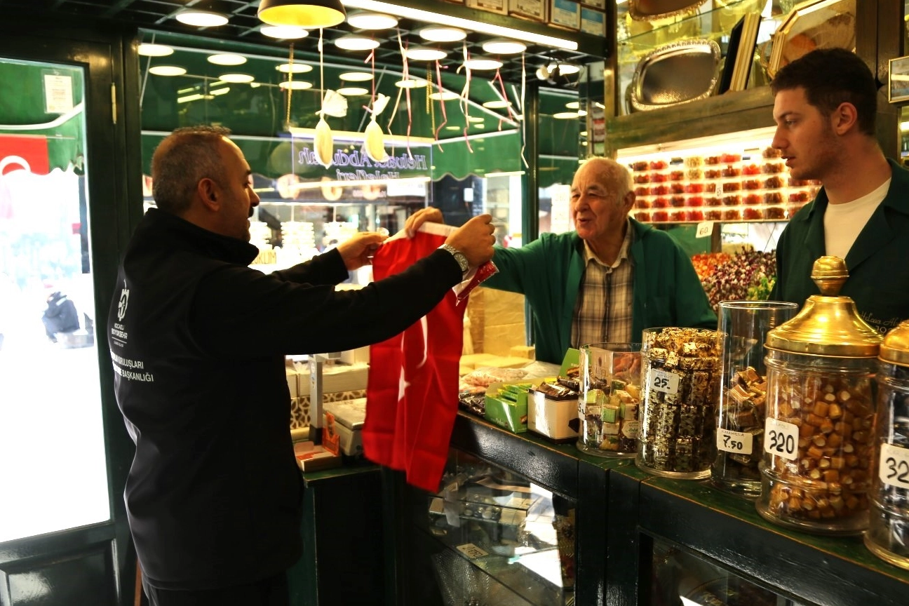 Büyükşehir Belediyesi, 29 Ekim Cumhuriyet Bayramı öncesi şehir genelindeki esnaflara ve vatandaşlara Türk Bayrağı dağıttı