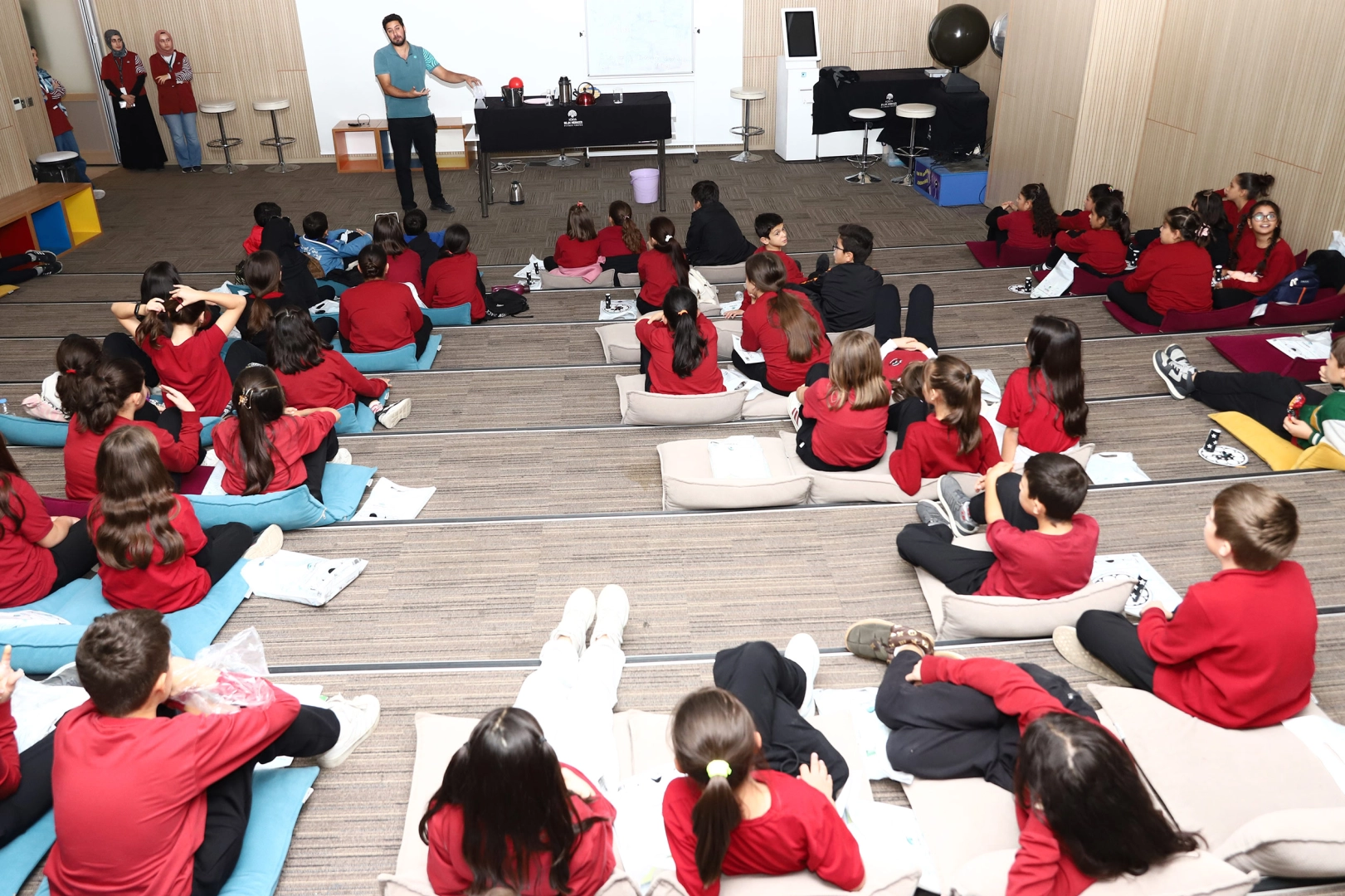 Bilim Merkezi’ne ulaşan öğrenciler, gün boyunca bilimsel temalarla zenginleştirilmiş etkinliklerde yer alıyor.