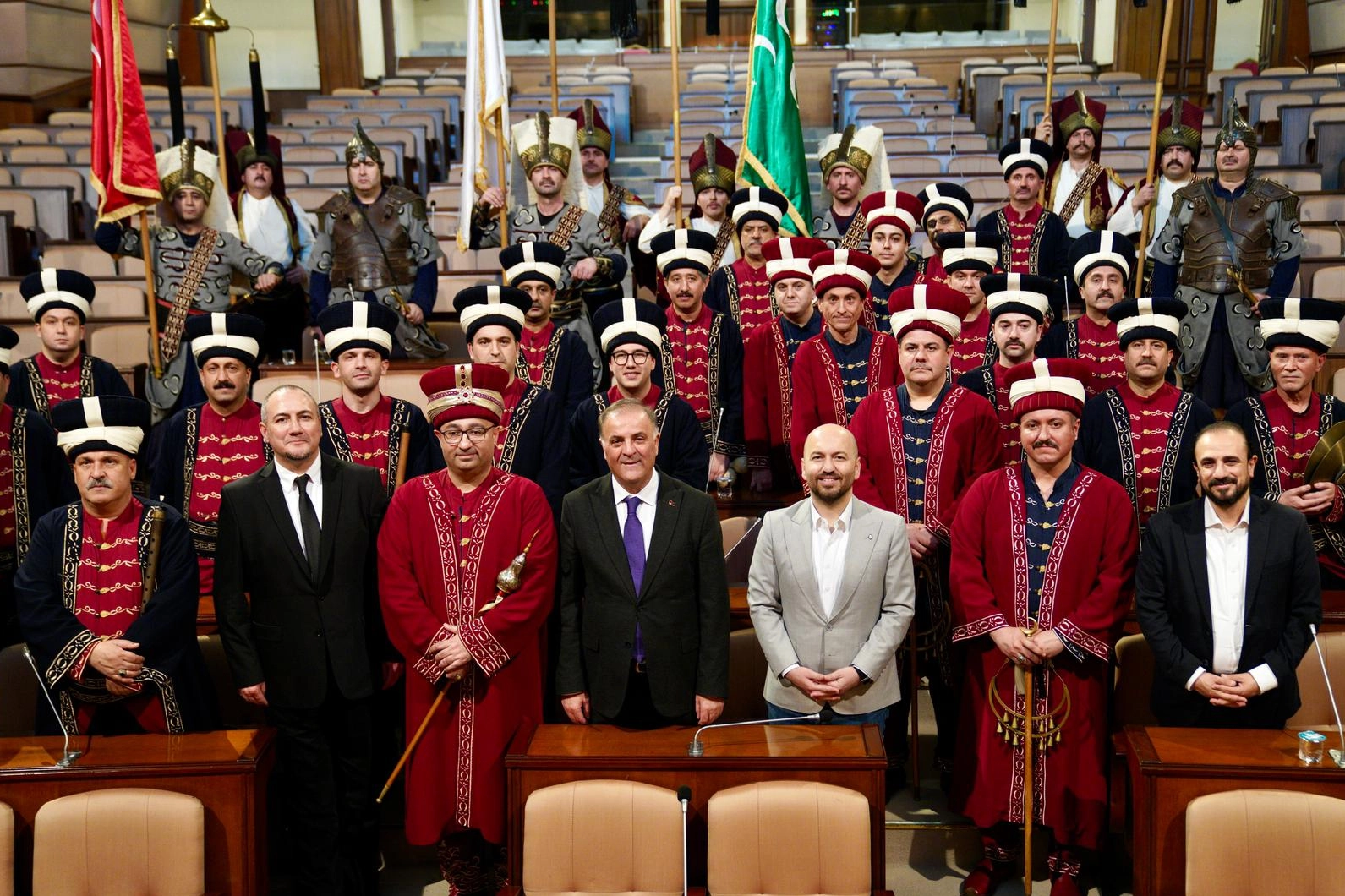 İSTANBUL (İGFA) - İstanbul Büyükşehir Belediyesi (İBB) Başkanvekili Nuri Aslan, A Milli Futbol Takımımızın, 2026 Dünya Kupası Play-OFF Turu Yarı Finali’nde Romanya’yı kendi sahamızda 1-0 mağlup ettiğimiz kritik maçta desteği ile tribünleri coşturan İBB Orkestraları’na bağlı Mehteran Bölüğü ile bir araya geldi.