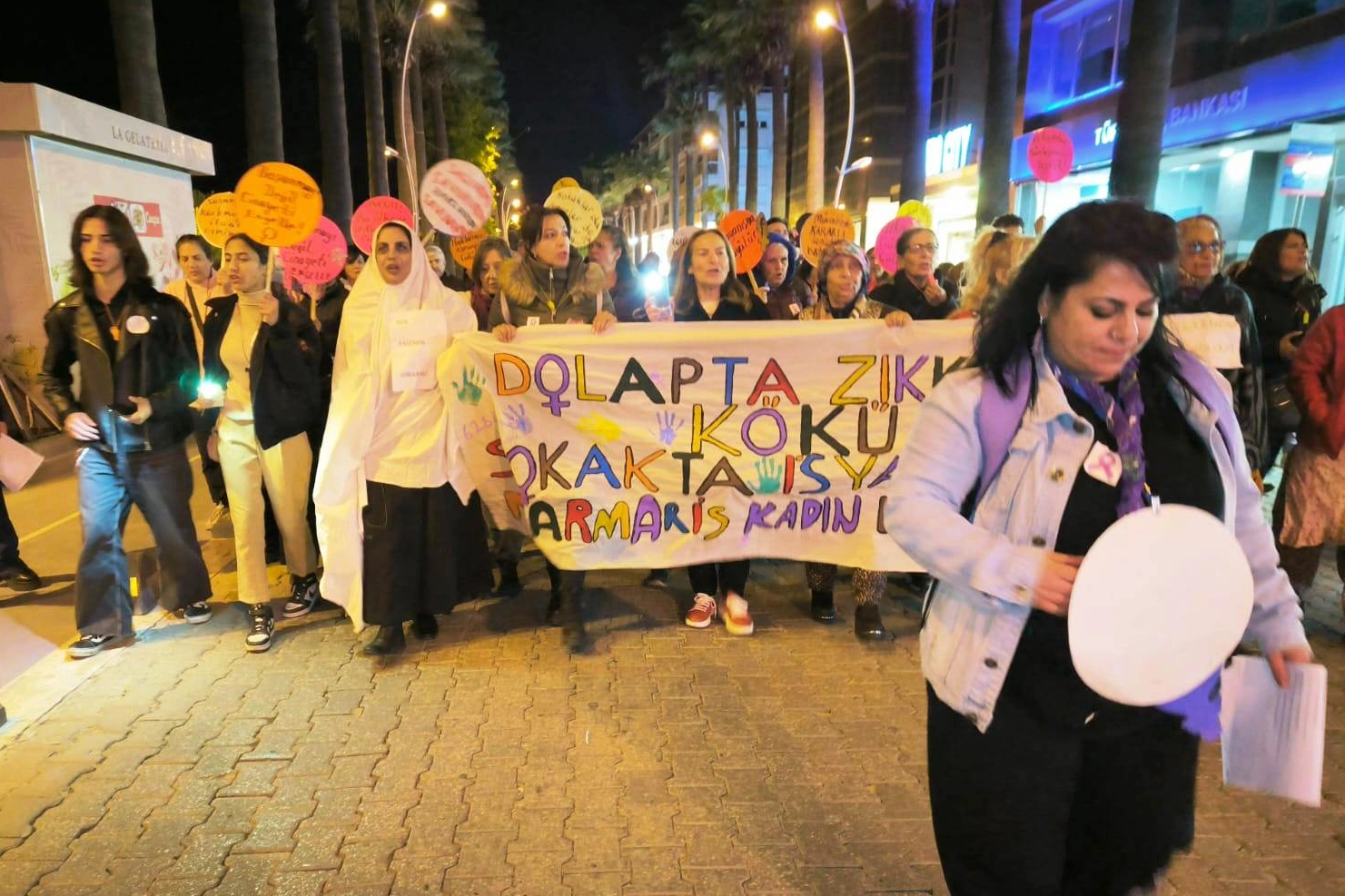 Muğla'da Marmaris Kadın Platformu, 25 Kasım Kadına Yönelik Şiddete Karşı Uluslararası Mücadele Günü dolayısıyla gerçekleştirdiği yürüyüş ile hükümeti protesto etti.