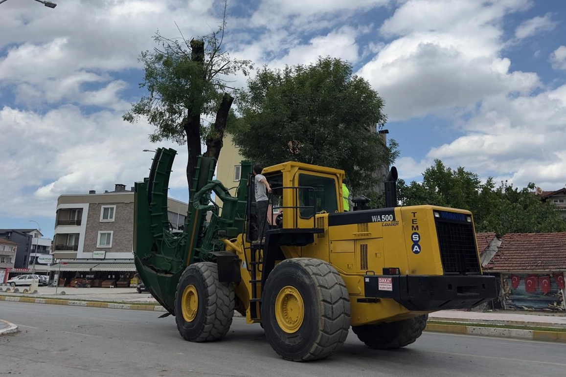Geçtiğimiz haftalarda trafiğin tek yönlü olarak kapatıldığı Farabi Caddesi’ndeki (Şeker Fabrikası Yolu) Metrobüs Hattı yolu güzergâhındaki ağaçlar sökülerek alternatif alanlara taşınıyor.