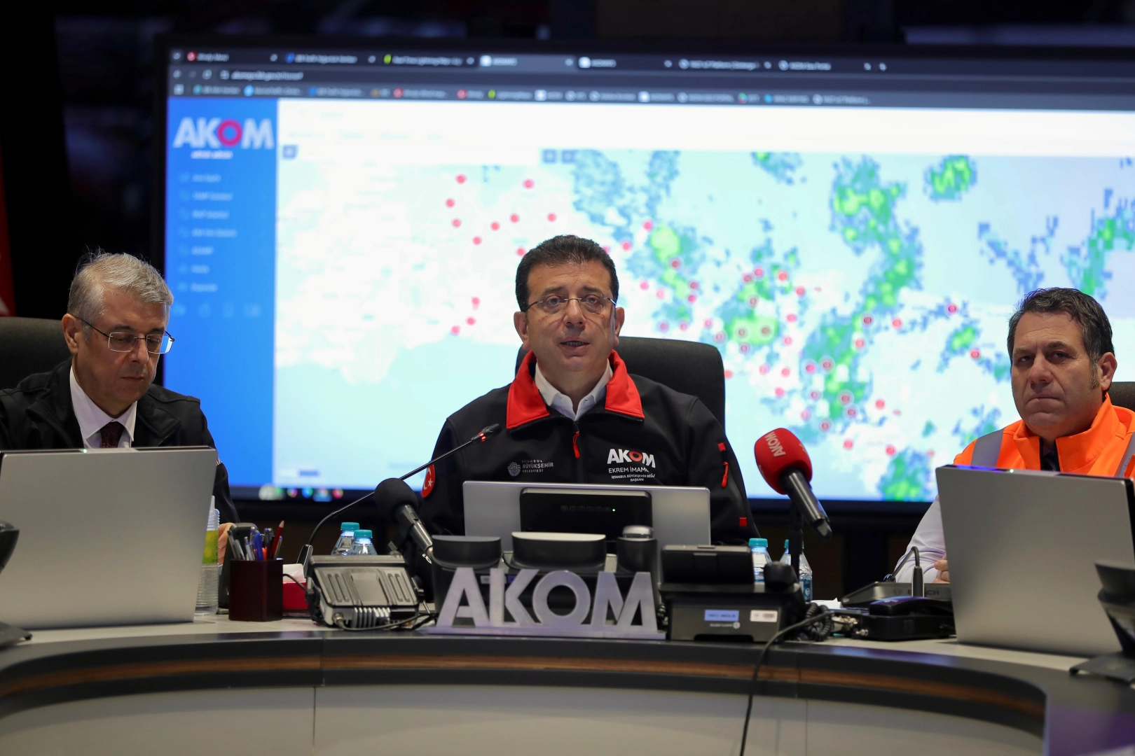 Türkiye Belediyeler Birliği ve İstanbul Büyükşehir Belediye Başkanı Ekrem İmamoğlu, kentte yaşanan olumsuz hava koşullarına karşı yapılan mücadeleye AKOM’da tanıklık etti.