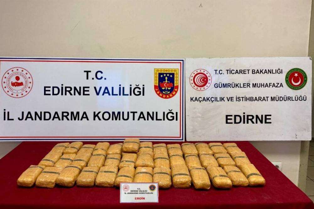 Edirne İl Jandarma Komutanlığı ve Gümrük Muhafaza Kaçakçılık ve İstihbarat Müdürlüğü ekipleri, Kapıkule Gümrük sahasında yürüttükleri ortak operasyonda 18 kilo 480 gram eroin ele geçirdi.