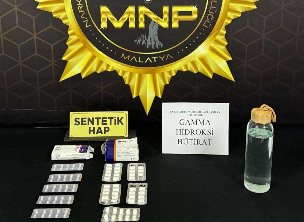 Malatya Cumhuriyet Başsavcılığı tarafından uyuşturucu satıcılarına yönelik sürdürülen çalışma kapsamında Malatya İl Emniyet Müdürlüğü’ne bağlı Narkotik Suçlarla Mücadele Şube Müdürlüğü ekipleri tarafından kente batı illerden Gamma Hidroksi Bütirat (GHB) uyuşturucu maddesi getirileceği bilgisi üzerine şüpheli İ.S’ye yönelik fiziki ve teknik takip başlatıldı. Polis ekipleri tarafından yapılan fiziki takipte plakası ve sürücüsü açıklanmayan araç durduruldu. Araçta yapılan aramada Malatya’da ilk defa yakalanan cam şişe içerisinde 803,3 gram Gamma Hidroksi Bütirat (GHB) uyuşturucu madde ile 94 Sentetik Ecza Hap ele geçirildi. Ele geçirilen uyuşturucular muhafaza altına alınırken, gözaltına alınan İ.S., emniyetteki sorgulamasının ardından çıkartıldığı mahkemece tutuklanarak cezaevine gönderildi.