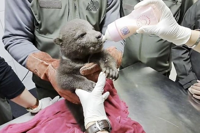 Orman işçilerinin bulduğu yavru ayı "Bulut"a özel bakım