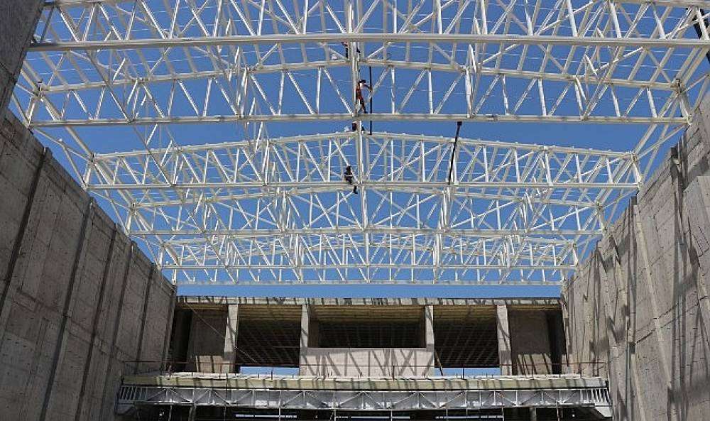 Antalya Büyükşehir Belediyesi’nin Serik Kongre ve Kültür Merkezi Projesi’nde inşaat çalışmaları hızla sürüyor. Projede ara sahne, üst balkon, çelik ve döşeme beton imalatları tamamlanırken, çelik çatı imalatında sona yaklaşıldı.